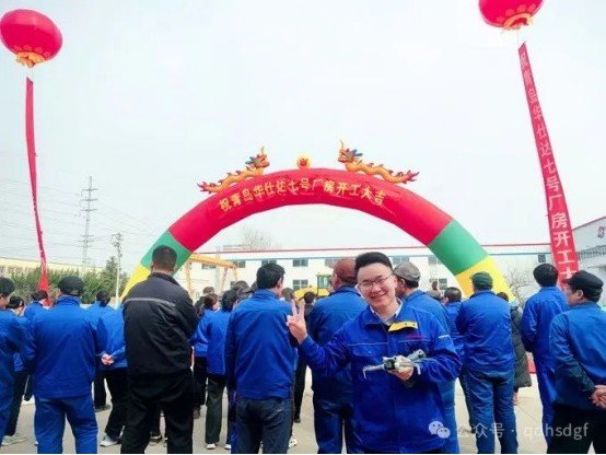 Colorful flags were flying at the site, lanterns were hung high, and an arch decorated with two upward facing dragons stood on the construction site. On both sides were hung huge slogans "Wishing Qingdao Hua Shi Da a happy start of the No. 7 Factory Building" and "Congratulations to Qingdao Huashida for continuing the past and creating great achievements in the future." The company leaders, outstanding employee representatives and invited guests wearing corsages were all smiling and in high spirits. They stood at the ceremony one after another, congratulating each other and expressing their joy. The ceremony was presided over by Huang Baoming, deputy general manager of the company, and Shen Zeming, deputy general manager, delivered a speech. Ma Peijun, deputy secretary of the party committee and vice president of Gujian Group, Jiang Daigang, chairman of Qingdao Huayi Construction Engineering Co., Ltd., and others attended the ceremony.