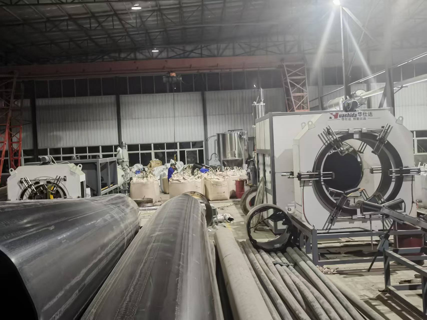 After more than two months of intense operation, Yulin Huajian Pipeline Co., Ltd., a professional manufacturer of green and environmentally friendly pipeline products exclusively invested by Qingdao Huashida Machinery Co., Ltd., has prepared an 8000 square meter modern factory building. A three person team led by Huang Baomin as the general manager and Ma Zhili as the technical director has also been formed. With the support of the Yulin Municipal Government in Shaanxi Province, the first phase of more than 4000 tons of high-quality polyethylene raw materials is also ready. It can be said that everything is ready except for equipment. In this situation, the preinsulation pipe equipment tailored by Huashida for Huajian Pipeline officially began shipping on October 17th.