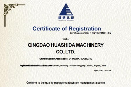ISO9001 quality certification of Huashida gained. hsdc@qdhsd.com
