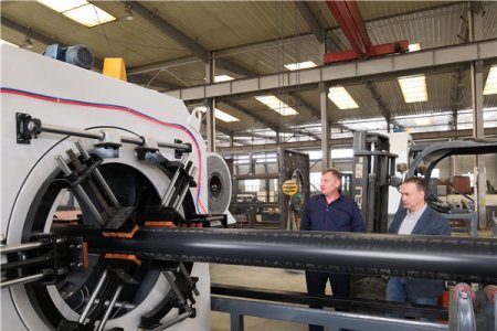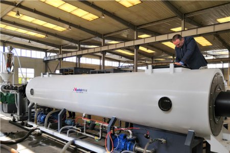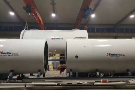 Qingdao Huashida is delivering the 200th sets large-diameter vacuum calibration method directly buried thermal insulation jacket pipe production line.