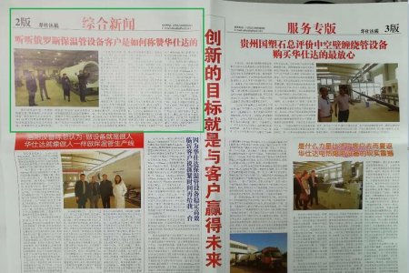 HSD thermal insulation pipe jacket extrusion line win Russia clients. Factory newspaper record the cooperation progress and how to build trust .