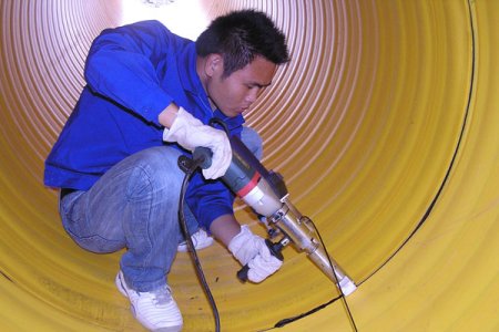 It is divided into cladding type and twining type according to coating pattern of PE layer extrusion type for 3LPE coating production line. hsdc@qdhsd.com, 008613963975523