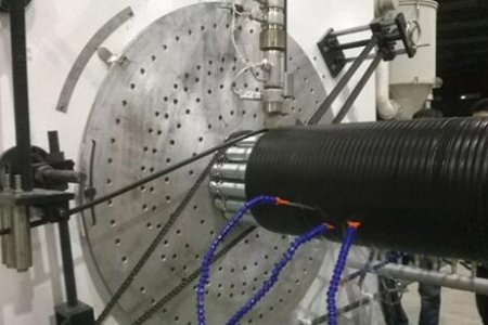 Huashida HDPE hollow-wall winding pipe extrusion line can produce 3000mm largest diameter pipe .