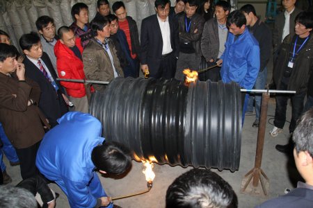 HSD Large Caliber PE Spiral Drainage Pipe Production Line was tested by our client before make delivery.